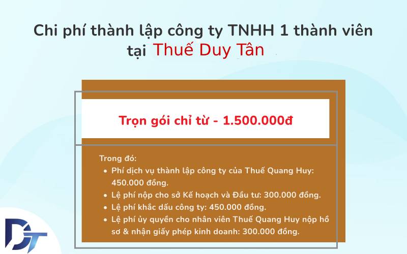 Chi phí thành lập công ty TNHH 1 thành viên trọn gói